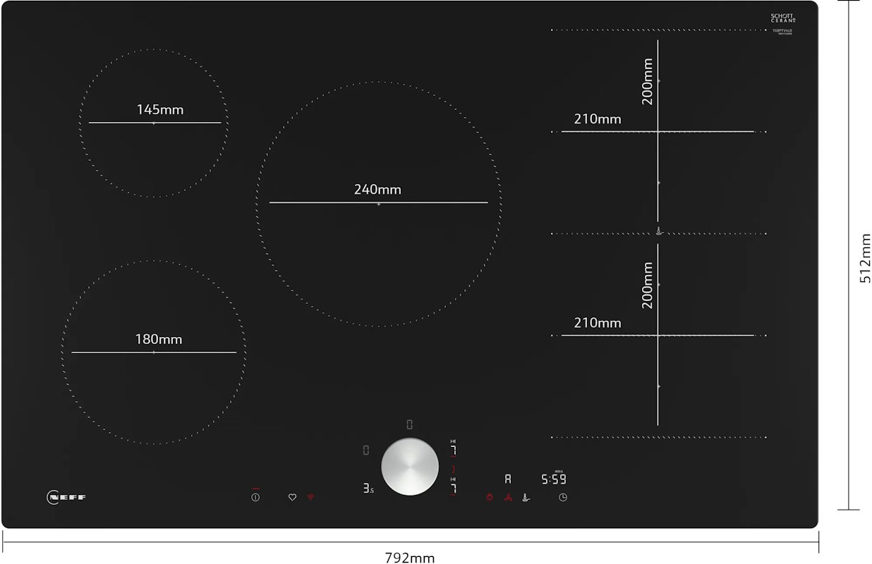 N 90, Induktionskochfeld, schwarz, flächenbündig (integriert)