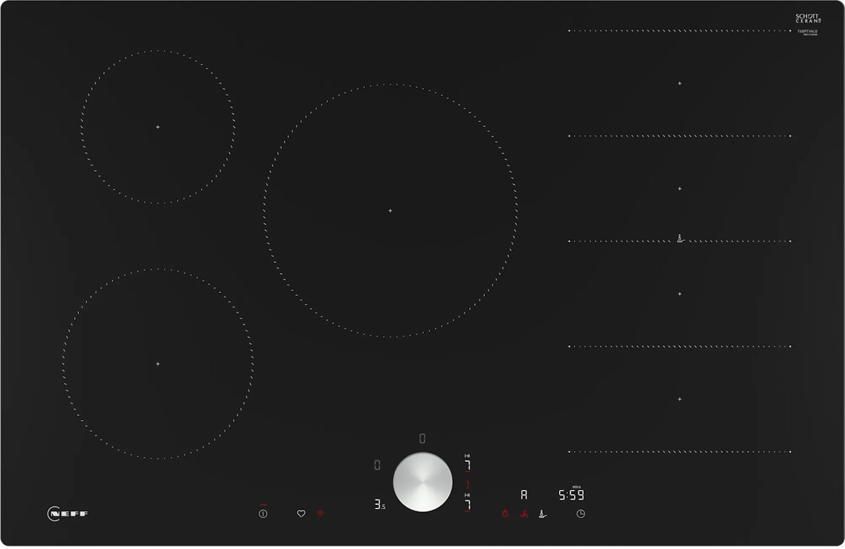 Kochfeldbasierte Haubensteuerung (mit passendem Dunstabzug): Aktiviert den Dunstabzug beim Kochen automatisch, dank der WiFi-Verbindung von Kochfeld und geeignetem Dunstabzug.